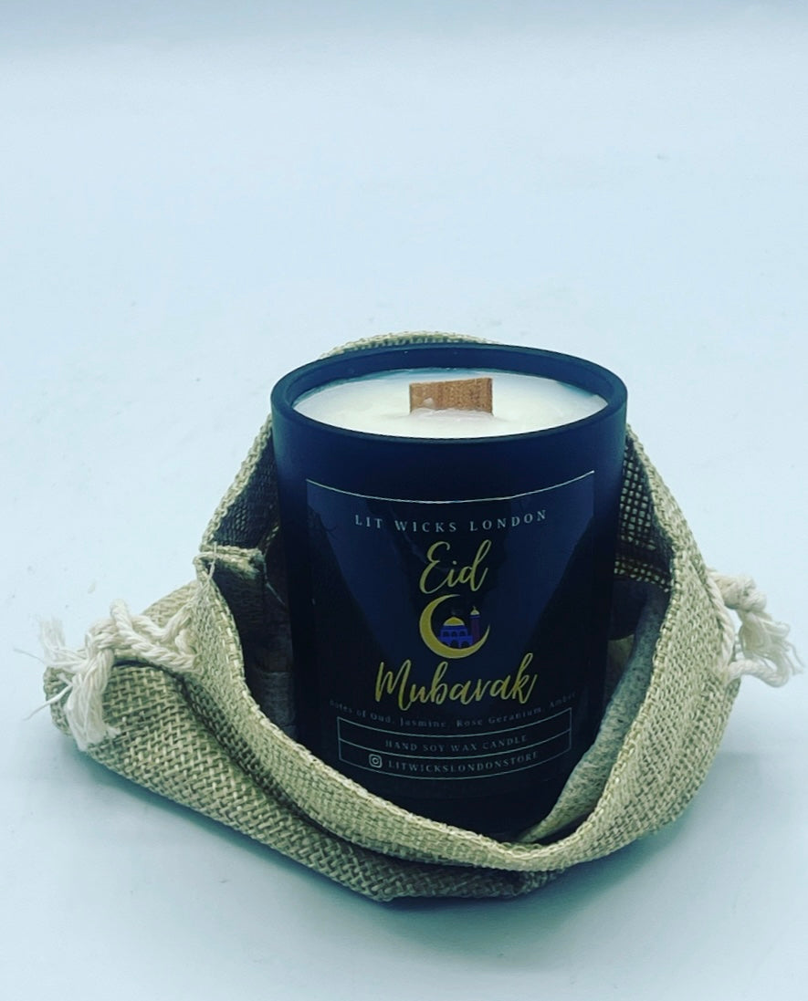 Eid Mubarak Handmade Wooden Wick Soy Wax Vegan Candle