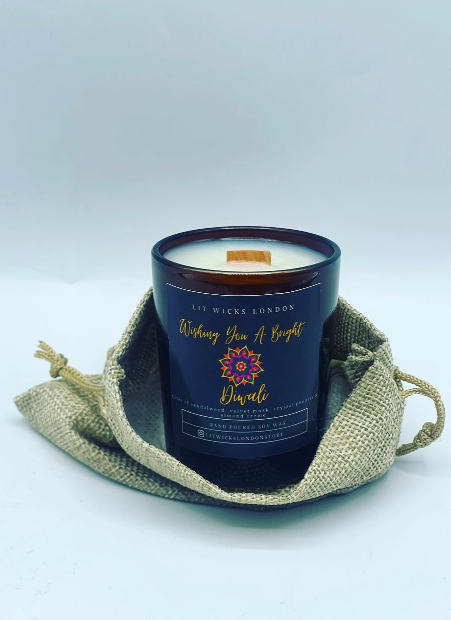 Diwali Handmade Wooden Wick Soy Wax Vegan Candle