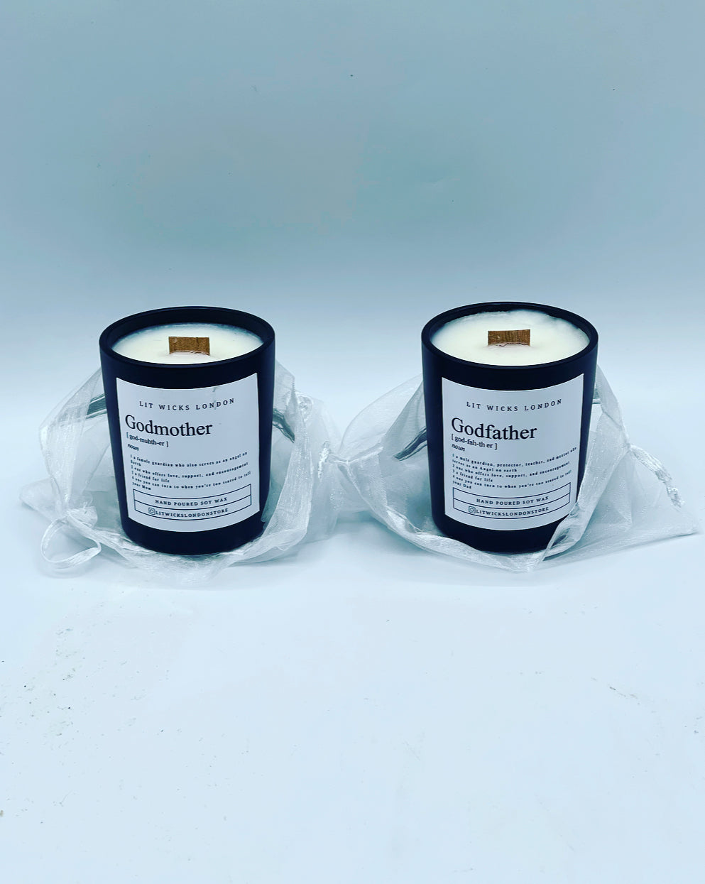 The perfect way to show appreciation to those extra special god parents. Gift in style with our godmother and godfather candles.