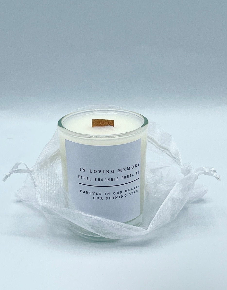 Our personalized remembrance candles. These candles are not only beautifully crafted, but they also hold a special meaning. I've been lighting one every night in memory of my loved ones who have passed away and it brings me such a sense of peace and comfort. Plus, the scents are heavenly.