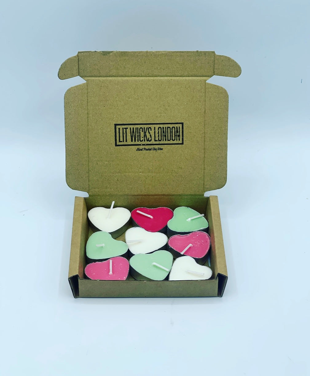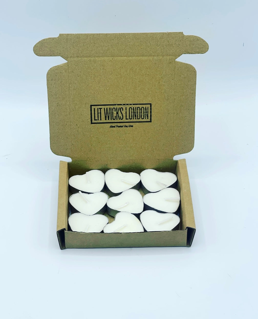 Unscented Soy Wax Heart Tea Lights 9x Box