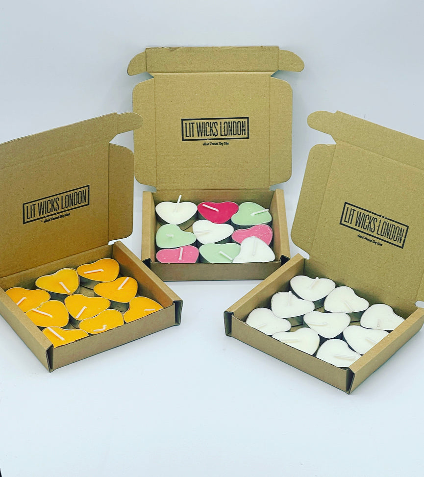 All our tea lights are made with 100% natural soy wax all materials are vegan friendly and cruelty free.